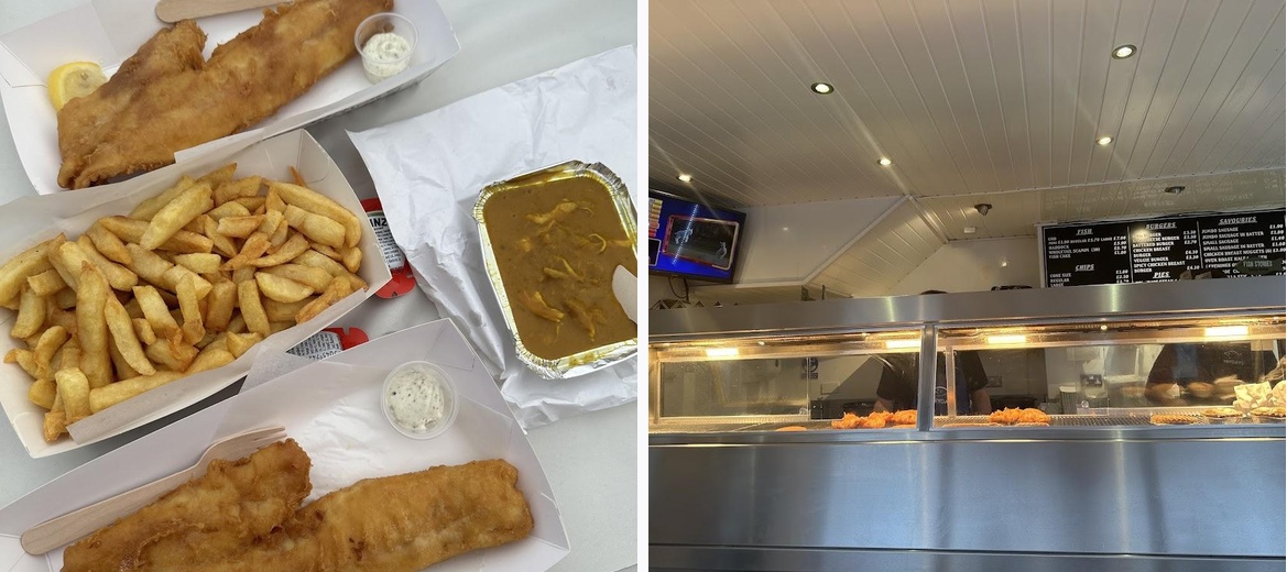 Really good fish and chip takeaway. Not greasy, well cooked. We had a big order for 10 people and it was all cooked really well. Friendly staff and good service too (very busy on a Friday evening but everything seemed well in hand). A great end to a lovely week's holiday in the town. Recommended!